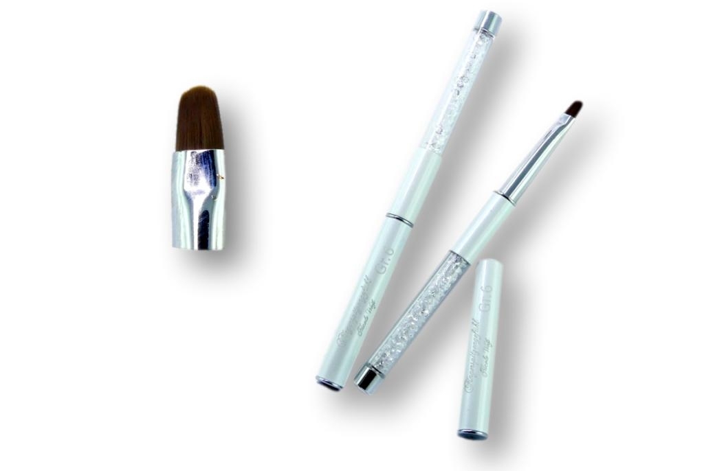 Mit diesem Pinsel lässt sich das Gel hervorragend verarbeiten. Das Pinselhaar ist abgerundet. Somit lässt sich der Aufbau ohne viel Aufwand heraus arbeiten. Der Pinsel liegt hervorrangend in der Hand und besticht durch sein Design. Der Pinsel hat ein perlmutt-farbenes Gehäuse mit silbernem Schriftzug.
