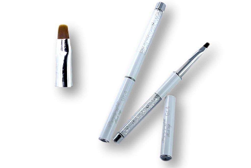 Mit diesem Pinsel lässt sich das Gel hervorragend verarbeiten. Das Pinselhaar ist flach und gerade. Somit lässt sich auch eine Smile-Line ohne viel Aufwand haarscharf heraus arbeiten. Der Pinsel liegt hervorrangend in der Hand und besticht durch sein Design. Der Pinsel hat ein perlmutt-farbenes Gehäuse mit silbernem Schriftzug.